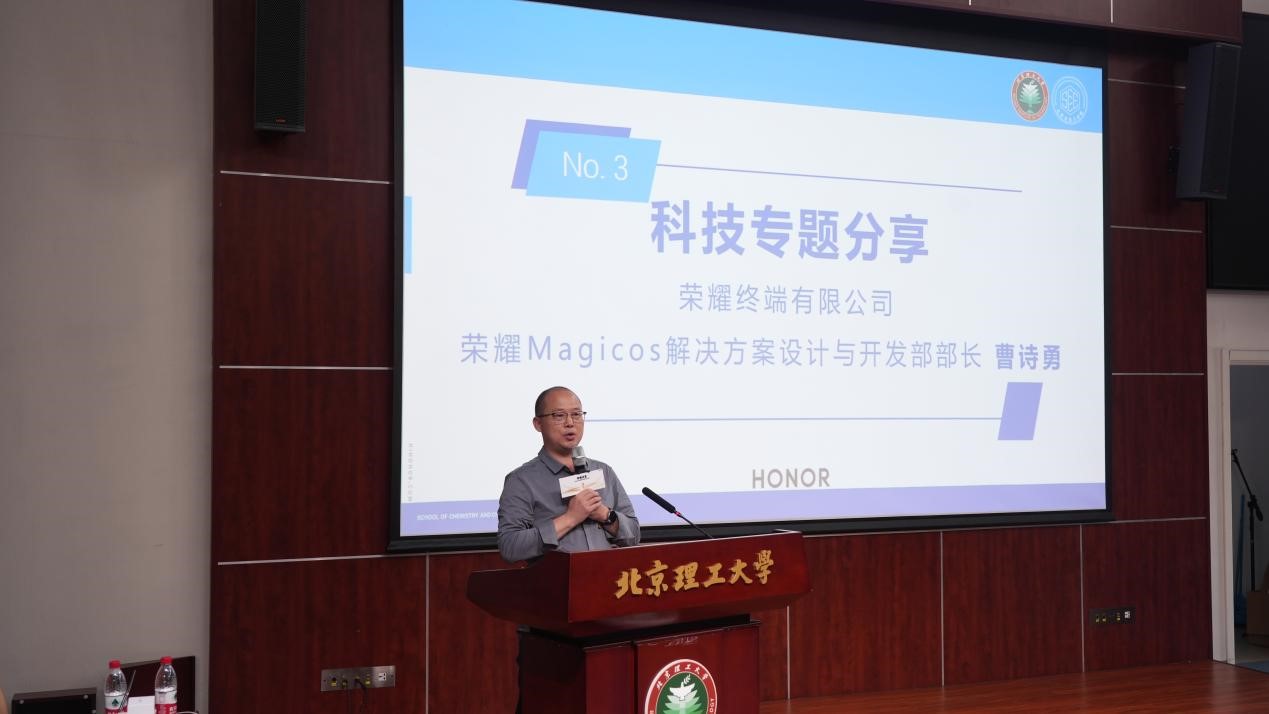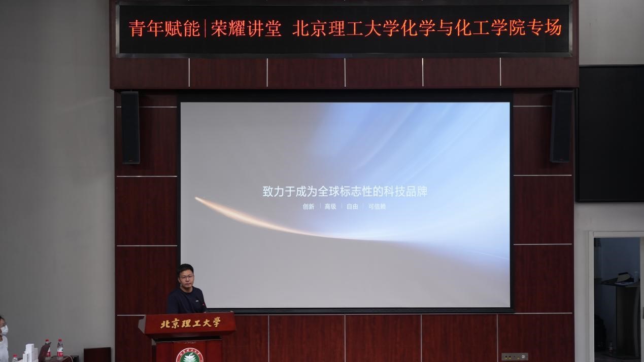 活动初始,由潘萌致辞,她提到北京理工大学建校80余年来,始终秉持为党育人、为国育才的宗旨,致力于培养科技创新的人才;积极探索,不断夯实科技自立自强的基础,为国家的科技发展贡献着自己的力量。通过本次青年赋能荣耀讲堂活动,同学们能够深入了解荣耀企业文化,感受当今智慧科技与生态技术,增强自身科技兴国的动力,勇当挺立时代潮头、挺进科技前沿的创新先锋。