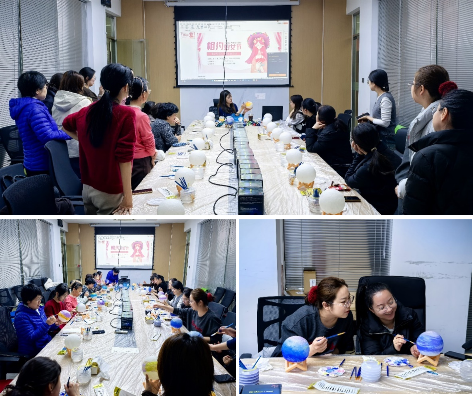 为丰富女员工的业余文化生活,展现女性的巧劳智慧,学院工会于3月6日上午10:30在工业生态楼927-928会议室成功举办了妇女节特别活动——手绘星球灯制作。
