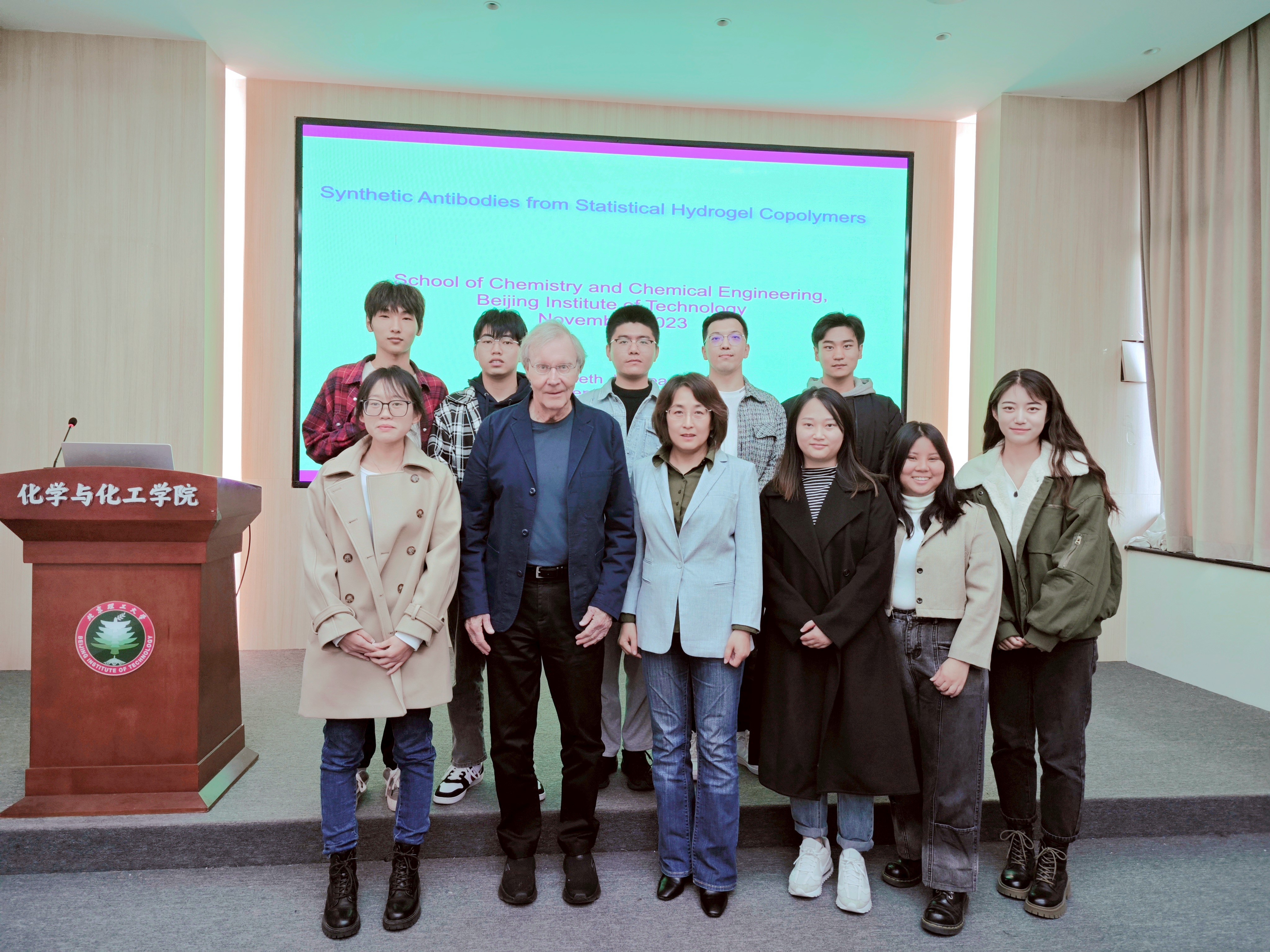 应北京理工大学化学与化工学院邀请,美国加州大学尔湾分校杰出教授Kenneth J. Shea于2023年11月4日上午做客北理工“百家大讲堂”,为我院师生带来题为“Synthetic Antibodies from Low Information Content Statistical Hydrogel Copolymers”的精彩报告。本次报告在生态楼118会议室进行,由薛敏老师主持。