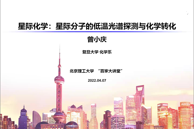 2022年4月7日上午,由北京理工大学研究生院主办、化学与化工学院承办的北理工“百家大讲堂”系列讲座在腾讯会议上举行。复旦大学曾小庆教授应化学与化工学院马嘉璧副教授的邀请,做了题为“星际分子的低温光谱探测与化学转化”的学术报告。报告由马嘉璧副教授主持,化学与化工学院的老师与学生参加了报告会并进行学术交流。