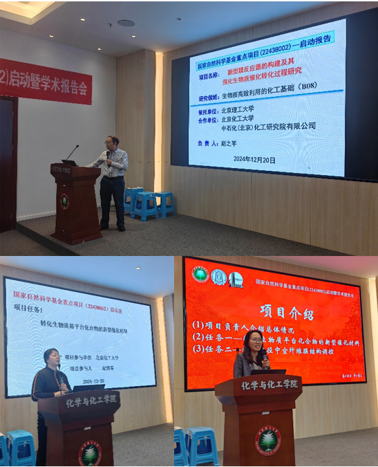 12月20日,国家自然科学基金重点项目“新型膜反应器的构建及其强化生物质催化转化过程研究(22438002)”启动暨学术报告会在北京理工大学良乡校区工业生态楼118举行。这是继赵之平教授主持完成“选择性渗透VOCs的化工分离新膜材料多层次微结构设计与性能调控制备(21736001)”项目之后,再次获得重点项目的资助。出席会议的有北京理工大学赵之平教授、北京化工大学纪培军教授、中石化(北京)化工研究院有限公司王玉杰高级工程师、北京理工大学桑乐特别研究员、毛恒特别研究员、王涛特别研究员、蔡玮玮特别副研究员、冯英楠特别副研究员、顾昊实验师,博士后徐李昊以及博士和硕士研究生50余人。