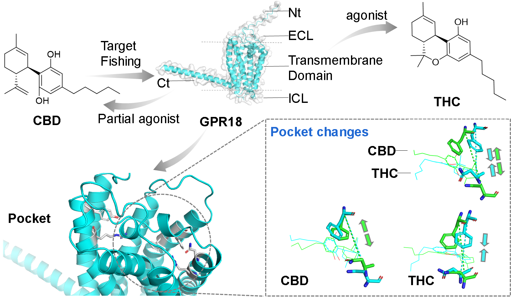 这些发现为发现大麻二酚药物作用的潜在靶点GPR18,揭示了部分激动剂和完全激动剂分子作用机制差异,丰富大麻二酚靶向作用分子机制方法学等内容提供了理论基础,对药物研发具有重大意义。