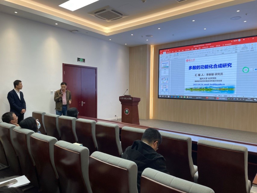 应北京理工大学化学与化工学院邀请,福州大学李新雄研究员于2023年10月24日10:00做客北理工“21世纪学科前沿”系列论坛,为我院广大师生带来题为“多酸的功能化合成研究”的精彩学术报告。本次报告在生态楼118会议室进行,由黄胜利老师主持,多名化院师生参加了报告。