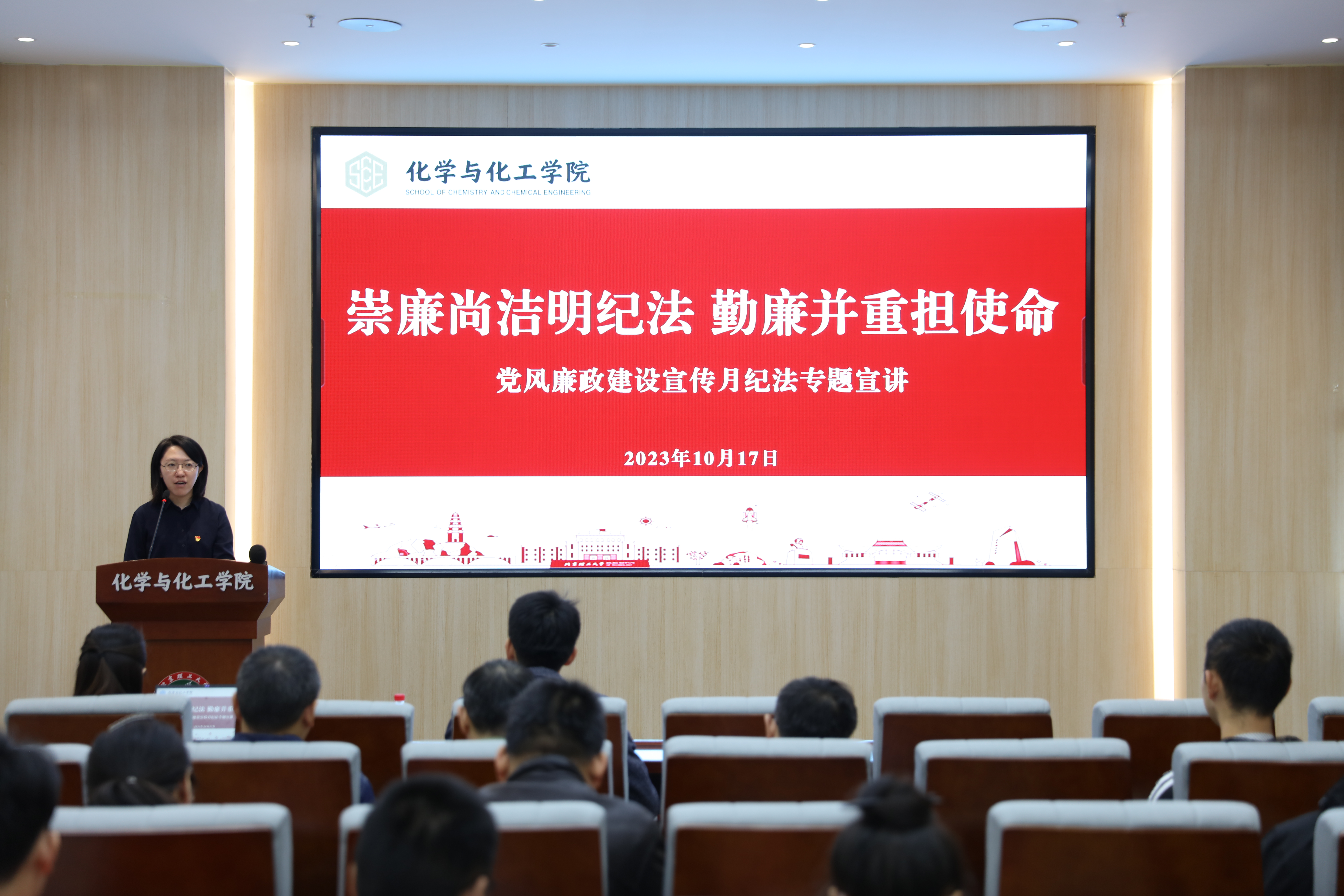 根据学校党委2023年全面从严治党工作部署,近日,化学与化工学院党委认真谋划、精心组织,开展了主题为“崇廉尚洁明纪法,勤廉并重担使命”的党风廉政建设宣传教育月活动。
