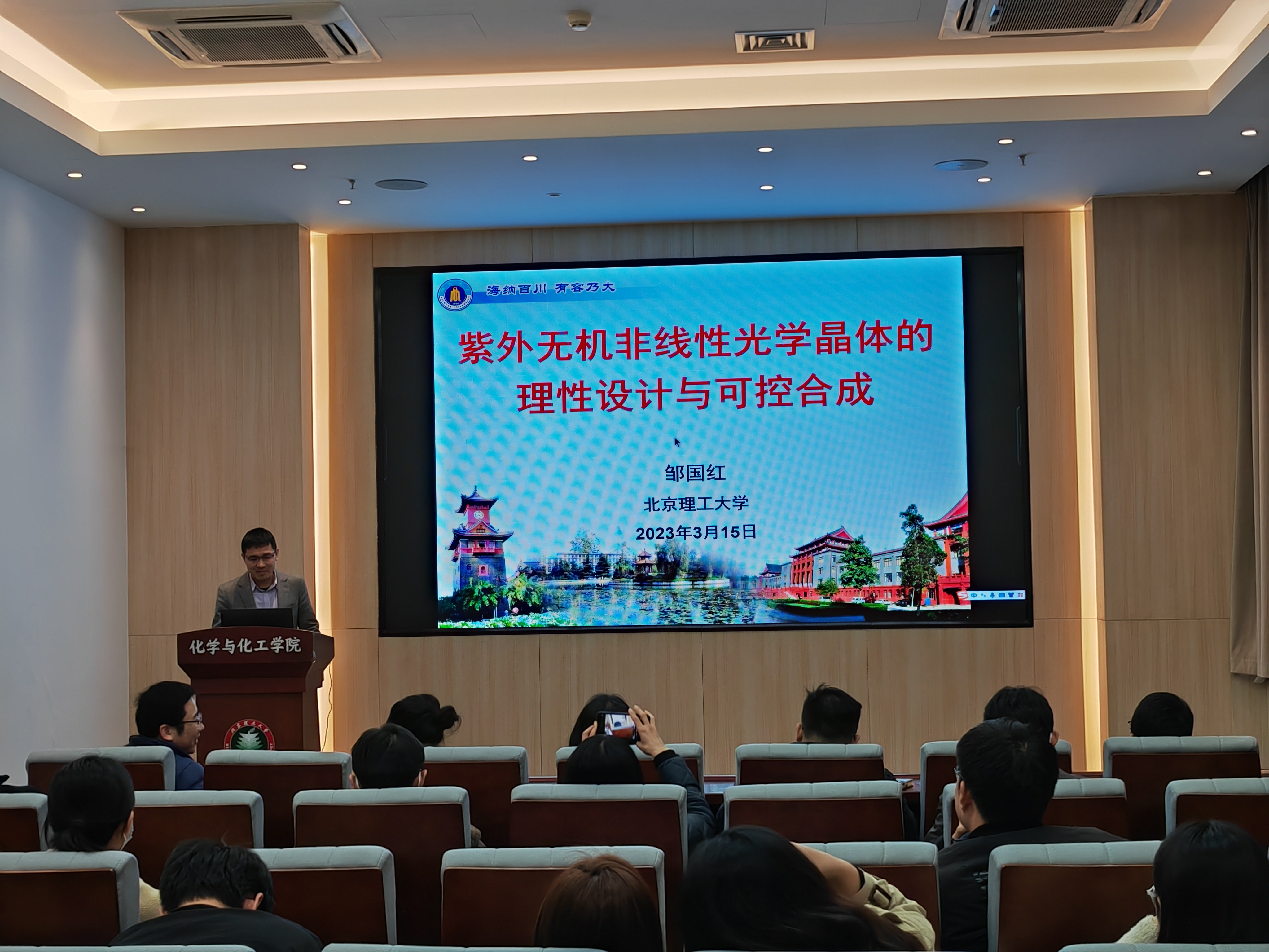 应北京理工大学化学与化工学院邀请,四川大学邹国红教授于2023年3月15日17:00做客北理工“21世纪学科前沿”系列论坛,为我院广大师生带来题为“紫外无机非线性光学晶体的理性设计与可控合成”的精彩学术报告。本次报告在生态楼118报告厅进行,由杨国昱老师主持,近六十名化院师生参加了报告。