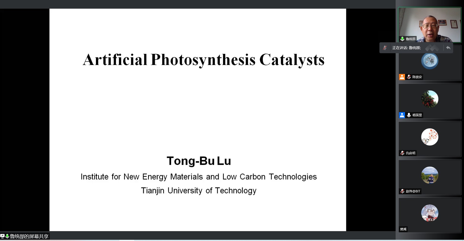 应北京理工大学化学与化工学院邀请,天津理工大学鲁统部教授于2021年7月2日8:00做客北理工“百家大讲堂”,为我院广大师生带来题为“人工光合作用催化剂”的精彩学术报告。本次报告在腾讯会议平台线上进行,由杨国昱老师主持,近百名化院师生参加了报告。