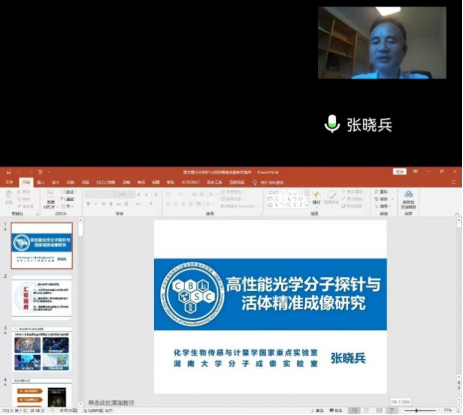 2022年11月10日下午,应北京理工大学化学与化工学院的邀请,湖南大学张晓兵教授做了题为“荧光探针结构调控与精准成像研究”的在线学术报告。