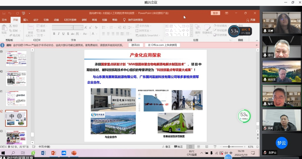 应北京理工大学化学与化工学院韩庆老师邀请,黑龙江大学付宏刚教授于2022年1月19日下午做客北理工“百家大讲堂”,为我院广大师生带来题为“太阳能人工利用的思考和探索”的精彩学术报告。本次报告在腾讯会议室790 907 339进行,由杨国昱教授主持,近六十名化院师生参加了报告。