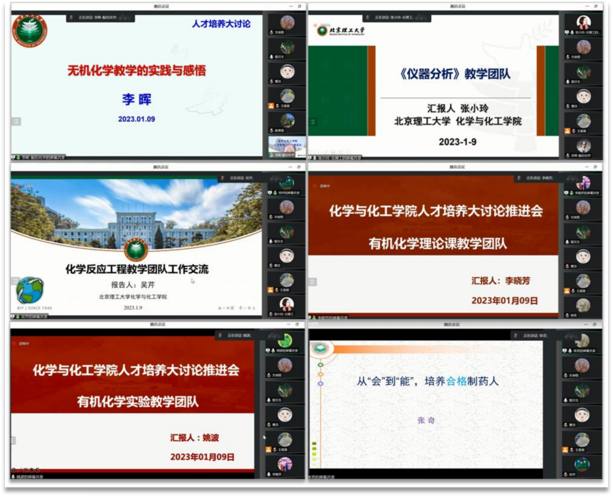 为了更好的充分发挥教学团队的优势力量,本次讨论会上纳米化学教学团队课长张加涛、化工原理教学团队课长赵之平、无机化学教学团队课长李晖、仪器分析教学团队课长张小玲、化学反应工程教学团队课长吴芹、制药工程综合实验教学团队课长张奇、基础有机化学教学团队课长李晓芳、有机化学实验教学团队课长姚波分别进行了人才培养、教学传帮带等方面的经验分享,介绍了本教学团队取得的成效,针对课程改革的思考和建议,围绕“五个一”建设目标,明确今后的努力方向。